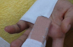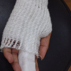 野球練習中転倒し、中指と小指を捻ったということで、当院に来院されました。
