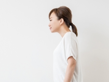顎が悪い方の姿勢は、右の写真のように背中が丸くなって猫背のような状態で、顔が前に出てるような姿勢になっていることが多いです。