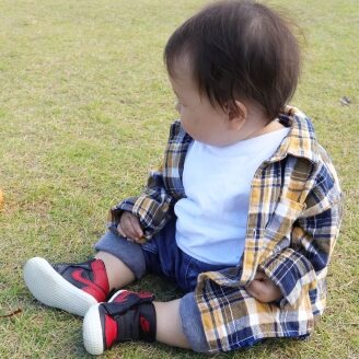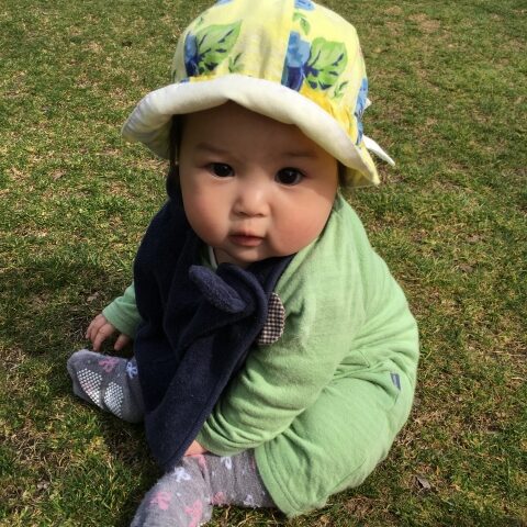 まだ体が小さく筋肉も弱い赤ちゃんは、無理な姿勢にならない座り方ですが、とても安定しているように見えます。