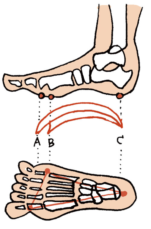 足底腱膜は、3つの土踏まず(アーチ)で三角形の箱のような形を足の裏に作ります。