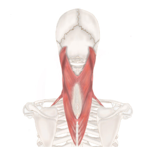肩甲骨から首の後ろについている筋肉と肩甲骨から肋骨についている筋肉が、首の動きと体を支える働きがあります。