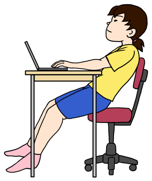 足の位置を膝よりも後ろにさげるだけで、自然と楽な姿勢で座ることができます。